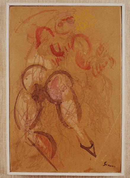 - NOTIZIE STORICO CRITICHE Nonostante la prima firma di Mario Sironi in un manifesto futurista risalga al 1920, l'opera in oggetto - donata da Claudia Gian Ferrari al FAI - è la testimonianza di un più precoce rapporto tra l'artista e il Futurismo, cui venne introdotto all'amico Umberto Boccioni. Se il credo futurista è per il dinamismo estremo contro ogni passatismo, la figura della ballerina viene utilizzata come simbolo per eccellenza del corpo umano e della sua velocità. La forma spezzata racconta una velocità prorompente ed energica, la scarpa appuntita il plasticismo dei seni così esibiti riportano la ballerina a uno specifico ambito dei locali per la prostituzione.