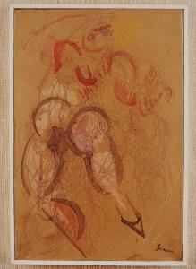 Ballerina futurista in acquerello su carta intelata.