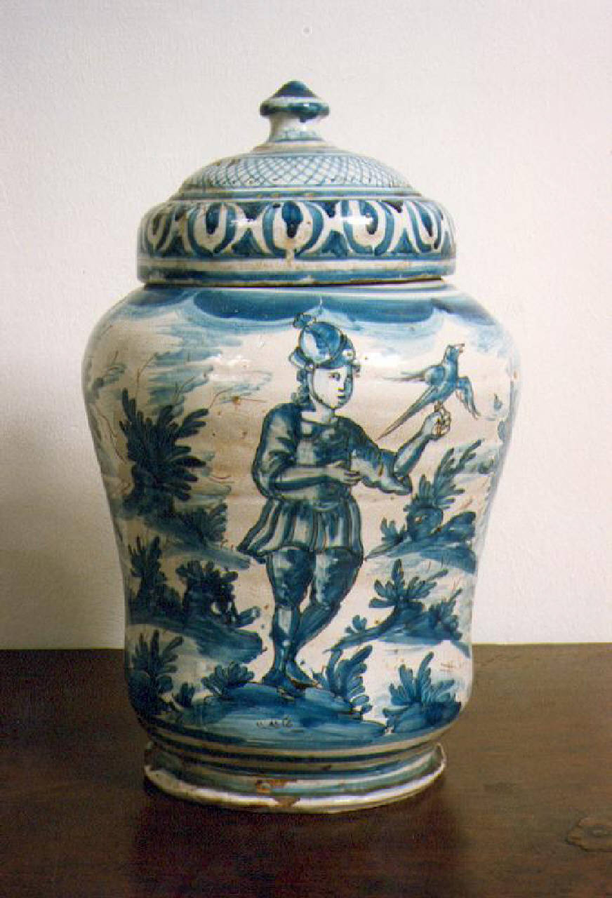 Vaso bianco-azzurro, falconiere