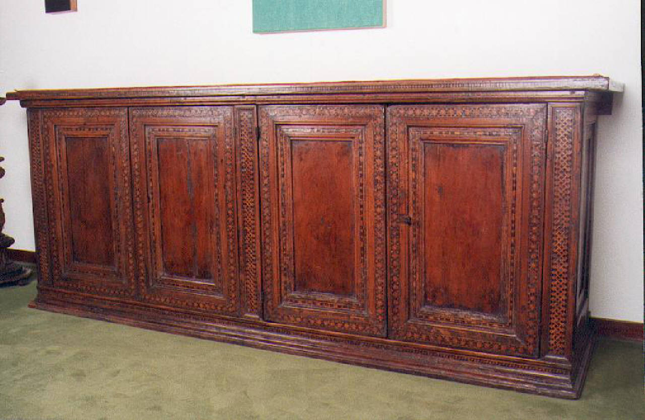 Il mobile, in legno intagliato con quattro ante, è un mobile da sacrestia\n. Opera di una manifattura umbra, è databile tra la fine del XV secolo e \nla prima metà del XVI secolo.