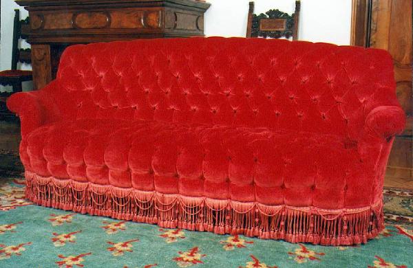 Divano velluto rosso capitonne 3 posti