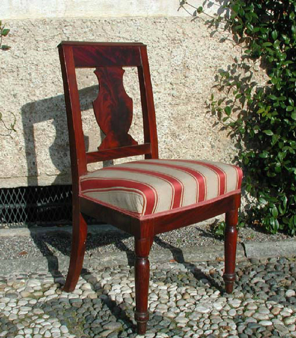 Sedia, stoffa righe bianche-rosse