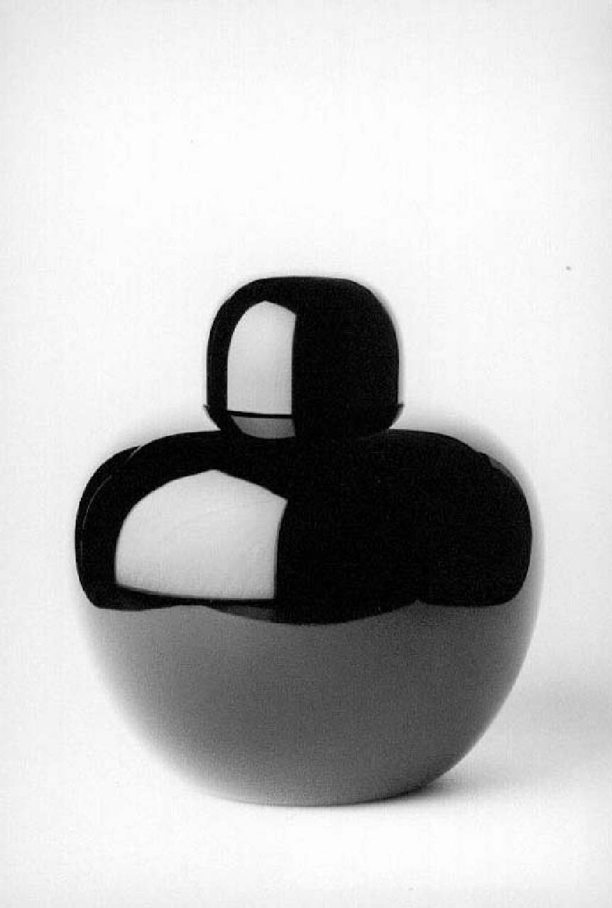 Vaso con coperchio in vetro opalino incamiciato colore nero. Realizzato dalla vetreria Venini di Murano, è uno dei modelli di vasi in vetro opaco s\noffiato e lavorati a mano della serie ¿Cinesi¿ ideata da Carlo Scarpa.\n Le forme e il materiale opaco riecheggiano il vasellame cinese.