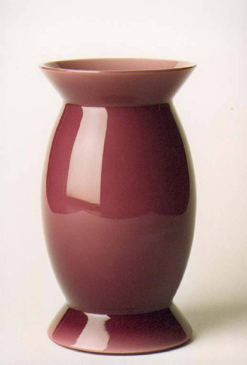 Vaso in vetro opalino incamiciato color ametista. Realizzato dalla vetreria Venini di Murano, il modello ¿Sidone¿ rientra nella serie di vasi in\n vetro opaco soffiato e lavorati a mano disegnata da Alessandro Mendini negli anni Novanta.