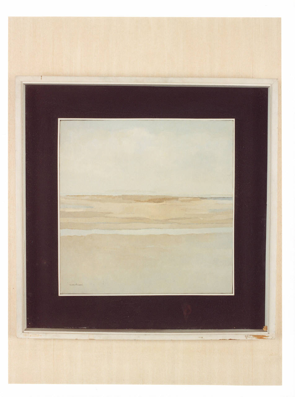 - NOTIZIE STORICO CRITICHE Il dipinto, già nella collezione delle sorelle Gigina e Nedda Necchi, entra a far parte del patrimonio FAI nel 2001, in quanto parte del lascito di Villa Necchi Campiglio a Milano. L'opera rappresenta un paesaggio con tratti essenziali e toni cromatici soffusi giocati sull'azzurro e sul beige. Collocato già prima dell'apertura della Villa al pubblico nel tinello di servizio del Seminterrato, il dipinto è un prezioso esempio della produzione di Aldo Cerchiari (1906-1971), figura attiva nella Milano del secondo dopoguerra. A partire dai pirmissimi anni Cinquanta, il suo percorso creativo, ancora squillante nei colori, si contraddistingue per una visione materica, che si traduce nelle superfici corrugate delle serie "Segni del tempo" e "Orizzonti", in cui la luce riduce le forme all'essenzialità del nero e del bianco, fino a giungere, negli anni Sessanta, a paesaggi profondamente lirici, dai toni soffusi, delicati, fatti di una material pittorica che si fa quasi trasparente, come nel caso di questo "Paesaggio".