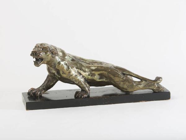 Fiera ferita in metallo dorato e argentato nei modi del Cacciapuoti.\nLa figura è ricoperta in metallo argentato con processo elettrolitico.