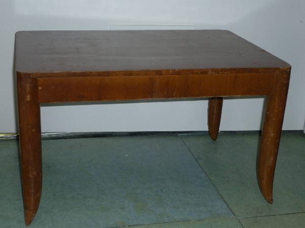Semplicissimo tavolino in legno con sostegni leggermenti ricurvi nella parte finale.