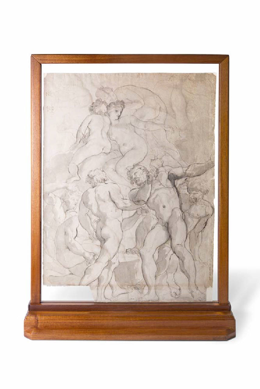 Il disegno, a penna e inchiostro bruno acquerellato su carta, è opera di \nPaolo Pagani (1655-1716). Raffigura sul recto uno "Studio di nudi maschili", sul verso uno "Studio di nudi maschili e femminili", a cui l'artista ha aggiunto delle somme aritmetiche. Di formato rettangolare, è orientato i\nn verticale e firmato sul recto in basso al centro.