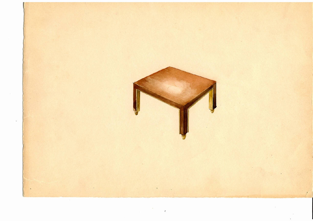 - NOTIZIE STORICO CRITICHE Allievo del pittore Achille Funi a Brera e poi dell¿architetto Piero Portaluppi, Guglielmo Ulrich diventa presto un importante architetto e designer. Dieci disegni e cinque fotografie storiche sono stati donati in ricordo di Luca Scacchetti, allievo di Ulrich e amico di famiglia, al FAI da Giancorrado e Giacinta Ulrich. I disegni, risalenti al 1935, e già in origine inventariati nell'archivio dell'architetto, erano utilizzati per mostrare ai clienti la resa finale del pezzo progettato. A differenza degli altri disegni destinati ai Campiglio, questo disegno sembrerebbe destinato a Giuseppe Toeplitz (cfr. timbro sul verso), banchiere polacco e proprietario dell'omonima villa a Varese. In particolare in questo disegno è possibile vedere un tavolino in legno con gambe rivestite in lamina di bronzo, molto simile ai tavoli da gioco progettati per Villa Necchi Campiglio.