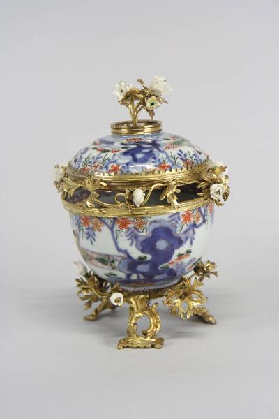 - NOTIZIE STORICO CRITICHE Il pot-pourri, donato insieme ad altre diciotto opere al FAI nel 2013, proviene dalla collezione di Angelo Zegna. Le opere - suppellettili e ceramiche - sono collocate al piano terra della villa, tra Biblioteca, Salone, Sala da Pranzo e Veranda. Il corpo del recipiente presenta una decorazione estesa, che si ripete sullo stesso coperchio: da un lato, tre figure; dall'altro, una decorazione floreale. Realizzato in porcellana di Cina, è un esempio dell'utilizzo dei colori di tipo Imari, stile di decoro caratterizzato da una predominanza del blu, applicato sottocoperta, e di smalti rossi e oro sopracoperta. Le montature in bronzo dorato risalgono allo stile francese Luigi XV.