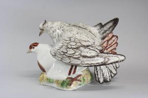 Grande gruppo in porcellana policroma di Meissen raffigurante due tortore.