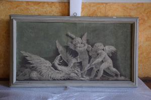 L'affresco, strappato e trasportato su tela, raffigura dei putti che trascinano un mostruoso rapace. Di formato rettangolare, è orientato in orizzo\nntale e dotato di una moderna cornice in legno.