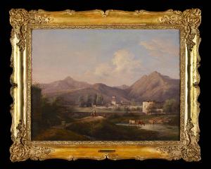 - NOTIZIE STORICO CRITICHE In fondo a una conca verde, tra prati e boschi, appare il complesso monastico di Astino. Lo osservano alcuni personaggi raffigurati sulla sinistra, mentre a destra tre mucche si stanno abbeverando. In questo luogo nel 1830 il governo della Lombardia aveva deciso di collocare i malati di mente; il progetto di adattamento dell¿edificio da monastero a ospedale psichiat\nrico, mai portato a termine, fu affidato a Giacomo Bianconi, docente di architettura in Accademia Carrara, mentre nel 1833 Giovan Battista Locatelli, amministratore dell¿ospedale, affidò a Pietro Ronzoni la realizzazion\ne di due raffigurazioni del convento, da nord e da sud, poi donate al municipio (e restaurate, da Ronzoni stesso, nel 1852). Altre due vedute, realizzate probabilmente negli stessi anni, sono registrate in collezioni private (Rea, Ricci 1992). All¿epoca era podestà della città di Bergamo il \nconte Pietro Moroni; fu lui a seguire committenza, realizzazione e consegna delle opere, che furono mostrate anche alla Vice Regina. Non stupisce, dunque, trovare a Palazzo Moroni una diversa versione della medesima veduta; non è improbabile che il conte, ammirato dal risultato, abbia chiesto s\nuccessivamente al pittore di realizzare un dipinto anche per la propria collezione. La tela è firmata e datata 1845. L¿artista utilizza una soluz\nione mutuata dalle opere dei pittori lorenesi, che aveva incontrato durante il suo soggiorno a Roma: penombra in primo piano, luce sullo sfondo. Nato a Sedrina nel 1781, Pietro Maria Ronzoni fu inviato nel 1800 a Roma dal padre, che aveva riconosciuto il suo talento artistico e che desiderava che si formasse come pittore. Corriere della Serenissima, lo affidò allo sc\nultore Antonio Canova e alla pittrice Angelica Kauffmann; furono loro a inserirlo come apprendista nella bottega di Luigi Campovecchio, considerato all¿epoca uno dei paesisti più importanti in Italia. Qui conobbe le ope\nre di Lorrain e di Poussin e incontrò Giuseppe Diotti, con cui strinse un\n profondo e duraturo legame di amicizia. Rientrato a Bergamo nel 1809, si affermò in Veneto e in Lombardia; fu professore dal 1811 in Accademia Car\nrara, apprezzato da Giacomo Quarenghi e da Giovanni Carnovali (il Piccio), e ottenne numerose committenze. Nel 1814 si trasferì a Verona, ma fu cos\ntretto a rientrare una decina di anni dopo per disgrazie finanziarie legate all¿eredità paterna. Ai debiti del padre si aggiunse lo sfortunato ma\ntrimonio con Giacinta Ceresoli (1827), che presto diede segni di squilibrio mentale. Gli anni Trenta e Quaranta furono segnati da enormi difficoltà\n, nonostante le quali Ronzoni cercò costantemente di lavorare. Il pittore\n e la moglie morirono, a distanza di qualche mese, nel 1862. Pur essendo amatissimo da artisti e collezionisti bergamaschi a lui contemporanei, Ronzoni fu dimenticato rapidamente, fino a una lenta e faticosa rivalutazione avviata da Luigi Angelini (1925), seguito da Roberto Bassi-Rathgeb (1944) e Luigi Cortesi (1963, 1964, 1965), a cui seguirono importanti esposizioni nel 1974 (Bergamo, Palazzo della Ragione, ¿Il Piccio e artisti bergamas\nchi del suo tempo¿) e nel 1983 (Bergamo, Galleria San Marco, ¿La pittu\nra bergamasca da Marco Gozzi a Silvio Poma¿). La prima ricostruzione del\nla sua opera è merito di Fernando Rea e Margherita Zanardi Ricci (1992).