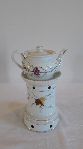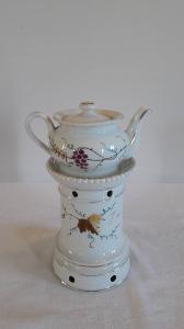 La veilleuse si compone di cinque elementi: base circolare munita di fori per l'areazione; fusto cilindrico con fori superiori per areazione, orlo superiore espanso concluso da una decorazione a piccole sfere; godet circolare all'interno del fusto; teiera panciuta con invaso, manico ad orecchio, beccuccio mosso; coperchio con presa circolare. Su fondo bianco, la decorazione dipinta a mano sul fusto e sul corpo della teiera consta di grappoli d'uva con foglie; iscrizione "Buona Notte" in oro sul corpo della teiera. Gli orli sono profilati in oro.