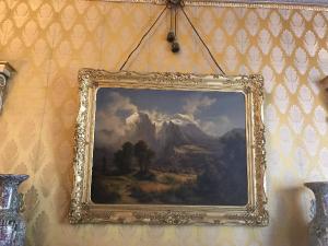 Il dipinto, a olio su tela, è un paesaggio bavarese di Julius Lange (1817\n-1878). L'opera, firmata e datata, è di grande formato rettangolare orien\ntato in orizzontale ed è dotato di una cornice coeva in legno intagliato \ne dorato.