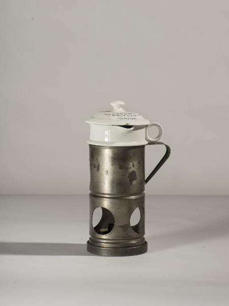 La veilleuse si compone di cinque elementi: base circolare in metallo, fusto in metallo con manico e grandi fori circolari per l'areazione; godet circolare in metallo munito di stoppino posto all'interno del fusto; tazza con beccuccio in porcellana bianca, manico ad anello, orlo inferiore espanso; coperchio con presa sferica.
