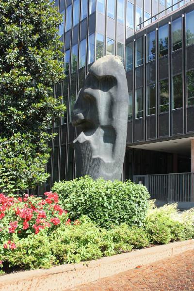 - NOTIZIE STORICO CRITICHE Oddo Aliventi di Cleto, nato a Sant'Angelo di Vado (Pesaro) il 10 aprile 1898, è stato un fecondo artista con una lunghissima "routine" di scultore di indubbio mestiere, artefice tra gli anni Trenta e Quaranta di opere monumentali appartenenti a canoni figurativi retorici e trionfali. Tra i numerosi lavori della prima metà del Novecento si annoverano alcune statue al Foro Italico di Roma, 1931, il Monumento ai Caduti postelegrafonici di Pola, 1934, La Vittoria del Lavoro e dell'Intelletto per il Municipio di Pescara, 1935, il Monumento nazionale di Filippo Corridoni, il colossale altorilievo che raffigura la vittoria dei Grandi Esploratori e Navigatori all'ingresso principale dell'EUR a Roma, 1941.\nAlla metà degli anni Cinquanta, per Aliventi inizia un percorso del tutto nuovo attraverso il quale costruire una diversa dimensione della scultura, elaborando e rielaborando in forma seriale la propria vena creativa, riconosciuta presenza nel contesto della scultura italiana della seconda metà del Novecento.\nLa mostra personale del 1955 alla Galleria Il Camino, Roma, ha rappresentato un momento ed un luogo di fondamentale importanza nel percorso artistico dello scultore, un momento di rottura. \nSe all'origine è prevalsa per Aliventi la matrice figurativa, tale da riconoscervi pressoché univocamente la vicenda artistica dei primi venticinque anni, a partire dagli anni Cinquanta Oddo Aliventi cerca nuovi spazi espressivi, trovando una dimensione congeniale nella ricerca plastica e nell'esasperazione della forma che dall'identità figurativa muove e trasfigura nella dimensione astratta.\nNella mostra personale sono esposte numerose opere, realizzate nell'arco di circa due anni; Aliventi richiama l'attenzione della critica più attenta alla ricerca informale, l'avanguardia espressiva della capitale gli è vicina con Luigi Moretti che in quegli anni conclude l'esperienza della rivista Spazio, Rassegna delle Arti e dell'Architettura, fondata nel 1950 per suggellare il collegamento fra le diverse discipline artistiche. \nLa nuova presenza di Aliventi è sancita nella VII Quadriennale Nazionale d'Arte del 1955-56, attorno alla quale si concentra l'attenzione per l'affermazione dell'arte informale. Sempre a Roma, all'Isola Tiberina, nel 1957 Lionello Venturi e Michel Tapié dedicano ampio spazio allo scultore pesarese nella mostra che inaugura la stagione d'avanguardia della Rome-New York Art Foundation.\nL'impegno degli anni Sessanta e Settata, sino alla soglia della sua scomparsa, avvenuta nel 1975, lo vedono ancora impegnato con opere monumentali, fortemente caratterizzate da rigorose declinazioni astratte.\nNella memorabile personale del 1955 furono esposte opere divenute esemplari, rivelatrici dell'originale cifra artistica di Aliventi. La materia prevalente, il gesso, rivelava la straordinaria perizia dello scultore che sapeva lavorare sul corpo della scultura facendola "vivere", levigata sotto l'azione naturale di una mano lieve e determinata. Da ragazzino, Oddo amava allungare i passi sino al greto dei torrenti della sua terra, dove osservava la moltitudine di sassi e ciottoli levigati dall'acqua in forme sempre nuove e diverse. Come a volerne scoprire le ragioni, ne ha trasposto il modo del continuo ed incessante levigare sulla materia che ha plasmato nelle sue sculture, molte delle quali richiamano le forme naturalmente derivate dall'azione modellatrice dell'acqua. \nFra le sculture esposte a Roma nella galleria Il Camino c'era Opera n. 11 (le sculture "informali" di Aliventi - che non era solito firmare e datare le proprie opere - sono denominate in successione numerica, in mancanza di una diversa identità), in gesso (cm 81 x 31), negli anni successivi replicata in bronzo in grandi dimensioni. \nL'opera è stata commissionata da Montedison per il palazzo sede della Montefibre, realizzato a Milano sull'area delimitata dalle vie Pola, Rosellino e Taramelli tra il 1968 e il 1972 su progetto di Marco Zanuso e Ludovico Belgiojoso. Collocata nell'area antistante la facciata principale, con la base affondata in un terrapieno ricolmo di arbusti e fioriture, la grande scultura fusa in bronzo appare come un totem che rimanda a una figura umana, della quale l'autore mette in evidenza non già la sagoma, che la renderebbe riconoscibile, bensì la materia, la massa e quantità organica del corpo, trasfigurato in un blocco monolitico nel quale sono evidenziate la porzione inferiore, circa la metà dell'altezza totale, fittamente percorsa da rigature verticali, quasi solchi che avvolgono all'origine il blocco, anche sul retro, e la porzione superiore, scavata con emergenze e sporgenze dalla superficie modellata, quasi sotto l'azione levigatrice dell'acqua.\nUn'organicità dai presupposti drammatici che si rivelano nel contrasto delle superfici emergenti ed approfondite, sulle quali si compie il movimento continuo di luce ed ombra che suggella la plasticità della massa scolpita
