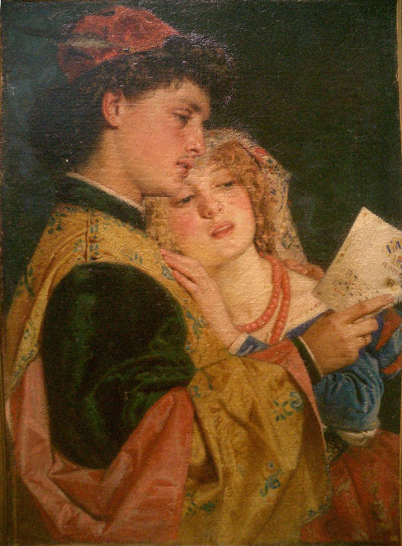 • NOTIZIE STORICO CRITICHE Acquistata dalla Società per le Belle Arti ed Esposizione Permanente per lire 500, l'opera venne assegnata nel 1866 al Municipio di Milano, in seguito all'estrazione annuale dei premi organizzata dalla Permanente tra i propri soci. Venne poi concessa in deposito agli uffici della Regione Lombardia.\nL'opera del pittore ticinese è ispirata, come si evince anche dal titolo, ad una particolare composizione musicale per voce e accompagnamento, la romanza, che si affermò nel '700 ed ebbe grande fortuna nelle esecuzioni private da salotto o da camera, anche per il suo carattere per lo più sentimentale. Ben s'inserisce dunque nel filone della pittura di genere tanto caro all'artista, che non accolse il passaggio dalla realtà al simbolo di molti pittori a lui coevi, ma si mantenne su una posizione legata alla pittura di storia d'impronta accademica. In questo dipinto si confermano inoltre alcuni tratti tipici della sua pittura, quali la ricchezza cromatica, la costruzione massiccia delle figure e la stesura del colore con forti e vigorose pennellate, che la rendono veloce ed espressiva. (Agliati Ruggia, 1998).