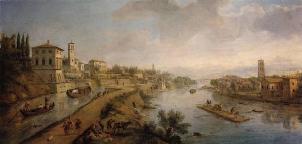 - NOTIZIE STORICO CRITICHE L'opera risulta presente sul mercato antiquario londinese (Christie's e Giacomo Algranti Ltd.) prima di essere acquistata dalla Regione Lombardia all'asta di Finarte n. 900 del 31 maggio 1994, per essere infine depositata nel 2000 presso le raccolte dell'Accademia Carrara di Bergamo.\nDello stesso soggetto, raffigurante la città di Vaprio d'Adda vista dal fiume, esistono sette diverse versioni - tre delle quali datate 1717 (Holkham Hall, collezione Leicester, inv. 162), 1719 (Roma, collezione privata) e 1722 (Londra, Christie's, 1949, n. 128) - e un disegno preparatorio conservato al Museo di S. Martino a Napoli (cat. D251), databile intorno agli anni Novanta del Seicento, nel breve ma intenso periodo in cui Van Wittel soggiornò in Lombardia. A partire da alcune vedute delle isole Borromee sul lago Maggiore, il pittore olandese si spinse infatti in parecchie località minori lungo le rive dei corsi d'acqua lombardi, attratto dalla poeticità dei paesaggi naturali ma anche dalla grande eredità lasciata da Leonardo da Vinci a Villa Melzi, costruita sulla confluenza del Brembo con l'Adda, che ospitò il pittore fiorentino durante la progettazione del Naviglio di Paderno (Briganti, 1996).\nVaprio e Canonica appaiono nel dipinto come una sola località divisa a un duplice corso d'acqua: da un lato il Naviglio Martesana navigabile fino a Milano e dall'altro la roggia che da Canonica scorre fino a Vailate. I due paesi erano fin dai primi del '700 località di villeggiatura e Van Wittel le dipinse, forse sollecitato da un amico dei principi Colonna (suoi mecenati) che possedeva una villa a Vaprio, proprio per far scoprire le meraviglie del posto ai gentiluomini stranieri che le avrebbero rese una tappa importante del Grand Tour (Malara, 2005).\nVan Wittel fornisce di questa veduta una rappresentazione rigorosamente documentaria, precisa fin nei minimi dettagli e nello stesso tempo di ampio respiro, soprattutto grazie alla luce limpida e cristallina che pervade tutto il quadro: il maestro olandese è infatti considerato da buona parte della critica il padre del vedutismo italiano, a cui s'ispireranno artisti del calibro di Pannini e Canaletto. In quest'opera in particolare, l'artista fonde sapientemente il gusto per il particolare tipico della pittura olandese e fiamminga con l'utilizzo di delicate cromie e un maggiore realismo nella realizzazione delle figure, aspetti questi invece più legati alla tradizione pittorica italiana (Dotti, 2007).\nLa stessa veduta della città di Vaprio, che oggi costituisce uno strumento essenziale per la ricostruzione delle antiche topografie della zona, venne successivamente ripresa anche da Bernardo Bellotto, che vi dedicò due tele dipinte intorno al 1744.