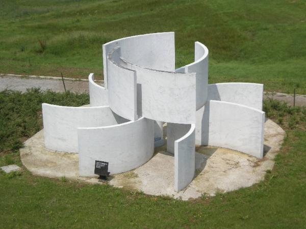 Scultura astratta costituita da lamine curve di marmo bianco disposte a raggiera su due livelli. Le pale, orientate in senso opposto, sono cinque nella parte superiore e sette in quella inferiore. Al centro si colloca una fila di piccole e aguzze lamelle di marmo blu brasiliano.