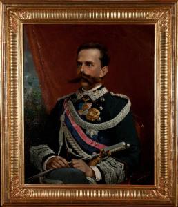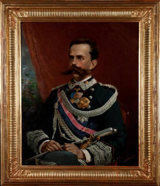 - NOTIZIE STORICO CRITICHE Firmata dal fratello minore di Mosè Bianchi, Gerardo, l'opera costituisce un ritratto di Umberto I di Savoia in alta uniforme. La data "1878" apposta dall'autore sotto la firma consente di collocare il dipinto in prossimità dell'ascesa al trono di Umberto, che all'epoca aveva 34 anni, dopo la morte del padre Vittorio Emanuele avvenuta appunto quell'anno.\nGerardo Bianchi studiò a Brera con Giuseppe Bertini e si specializzò in miniatura; oltre ad essere un apprezzato pittore, fu anche titolare di uno studio fotografico situato presso la piazza del Carrobiolo e la sua fama era tale che divenne il fotografo ufficiale della Casa Reale durante i lunghi soggiorni della corte in Villa Reale. Il taglio fotografico e la precisione della resa dei particolari, fanno ipotizzare che anche il ritratto in esame abbia come matrice una posa fotografica. Il dipinto qui schedato mostra infatti un'attenzione estrema per i dettagli: a dimostrazione dell'ufficialità del ritratto, tra i riconoscimenti di Umberto I sono ben riconoscibili nell'opera una serie di onoreficenze militari legate alla sua partecipazione alle battaglie risorgimentali, tra le quali si riconoscono la medaglia commemorativa delle guerre per l'Indipendenza e l'Unità d'Italia, retta da un nastro con il tricolore ripetuto più volte, e la medaglia d'oro al Valor Militare, retta da un nastro azzurro e conseguita dopo la battaglia di Villafranca (1866). Umberto I indossa inoltre il Collare e la Placca dell'Ordine Supremo della Santissima Annunziata di cui i Savoia si fregiavano.