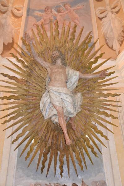 La dodicesima cappella è dedicata all'Ascensione, e al suo interno sono collocate su piani diversi sedici statue in terracotta dipinte, opera di Francesco Silva, che le concluse nel 1632. Le sculture, visibili da un ampio finestrone, danno vita ad una scenografica narrazione dell'Ascensione di Cristo, il quale è ben visibile in posizione elevata, al centro della parete di fondo. L'episodio è ambientato su più livelli: in primo paino, a semicerchio, sono posti gli apostoli e la Vergine che contemplano e commentano l'Ascensione di Cristo, in posizione rialzata si affolla una moltitudine di angeli adagiati su nuvole, mentre ancora più in alto Gesù è posto all'interno di una raggera dorata. Nella dimensione terrena ben indagata è in particolare la figura di Maria, dal commuovente afflato materno.\nLe statue in terracotta sono a grandezza naturale, dipinte a freddo.