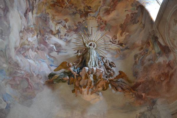 - NOTIZIE STORICO CRITICHE La quattordicesima cappella del Sacro Monte di Varese, dedicata al quarto mistero glorioso, l'Assunzione di Maria, risulta essere tra le prime ad essere edificate, e viene ultimata il 16 marzo 1610 per quanto concerne i lavori di muratura, progettati e diretti dall'architetto Giuseppe Bernascone. La statua della Madonna fu messa in opera entro il 1623, mentre non si hanno fonti documentarie che attestino l'esecuzione e la messa in opera del restante apparato statuario. Tra il 1681 e il 1687, e ancora nel 1689, l'edificio subì interventi di ristrutturazione, soprattutto nella parte alta, su progetto di Giulio Buzzi, che si occupò anche dei lavori eseguiti presso la nona, decima e tredicesima cappella, nel medesimo lasso di tempo..\nTra le curiosità legate a questa cappella si segnala che il pittore Corot nel 1834, durante il suo secondo viaggio in Italia, visitò anche il Sacro Monte di Varese e l'apprezzamento per questi paesaggi lo si rinviene in una tela, in cui ritrasse proprio il borgo di Santa Maria del Monte vist dalla quattordicesima cappella.\nGli affreschi furono restaurati da Poloni nel 1921 e successivamente nel 1990, quando nella cappella venne installato anche un impianto di illuminazione azionabile dall'esterno.\nL'Unesco nel 2003 ha inserito nel Patrimonio Mondiale dell'Umanità, il Sacro Monte di Varese, insieme ai complessi piemontesi di Belmonte, Crea, Domodossola, Ghiffa, Oropa, Orta, Varallo, e a quello lombardo di Ossuccio.