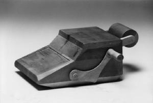 Modello di studio di calcolatrice da tavolo caratterizzata da un insieme di parti ben distinte per funzione: il corpo principale, formato da due prismi (uno contenente le parti meccaniche e l'altro per la tastiera inclinato per favorire l'utilizzo da parte dell'operatore), il rotolo della carta a vista, la maniglia laterale che serviva a dare l'input di stampa su carta.