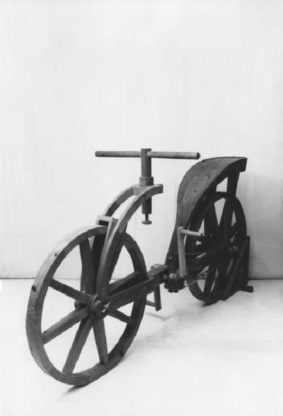 Modello di studio in scala 1:1 di bicicletta progettata da Leonardo da Vinci.