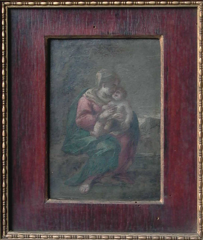 - NOTIZIE STORICO CRITICHE Il piccolo dipinto realizzato su lastra di rame non mostra caratteri stilistici che lo possano far collocare in un ambito culturale del tutto decifrabile, anche se è possibile ipotizzare, data la tendenza all'idealizzazione e la morbidezza nella conduzione, oltre all'ambientazione boschereccia, una collocazione entro l'area padana, specie emiliana. L'opera, anche per lo stato di conservazione non ottimale, non permette un'analisi esaustiva e trattandosi, comunque, di un'opera di destinazione devozionale appare assai difficile determinare le influenze e i caratteri peculiari di una pittura per sua natura frutto di copia da opere famose interpretata per lo più da artisti di non grandissimo talento.