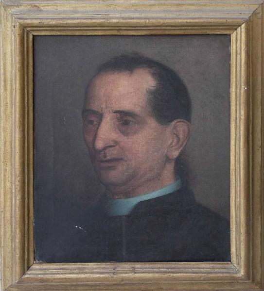 - NOTIZIE STORICO CRITICHE Il ritratto di Giovanni Battista Marchi, prevosto di Chiari dal 1843 al 1862, fu realizzato, secondo la testimonianza di don Luigi Rivetti, dal pittore clarense Cesare Raffaglio (Rivetti, 1918, p. 48; Rivetti, 1920, p. 72) ed è collocato nella sagrestia della chiesa maggiore della cittadina. Il dipinto raffigura il sacerdote seduto su uno scranno rosso, con un braccio appoggiato sulla scrivania, secondo i dettami del ritratto ottocentesco. La piccola tela conservata nella Pinacoteca Repossi riprende soltanto il viso del prevosto e la conduzione dell'opera, affidata per lo più al disegno e con una coloritura molto liquida e quasi approssimativa, permette di ritenere che si tratti di un ritratto dal vero del Marchi, realizzato in vista del dipinto ufficiale che il Raffaglio avrebbe eseguito a breve distanza. Rispetto alla tela della sagrestia del Duomo di Chiari, nella quale domina una certa, raggelata ufficialità, nel bozzetto della Pinacoteca Repossi si nota una maggiore inclinazione all'indagine realistica e all'intonazione più domestica dell'insieme. Si scorgono, d'altro canto, le doti di veloce disegnatore del Raffaglio che, al contrario, risulta più impacciato come colorista.