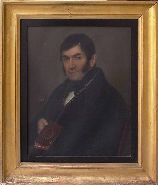 - NOTIZIE STORICO CRITICHE Attribuibile all'attività tarda di Giuseppe Teosa, questo dipinto, insieme a quello raffigurante Giovanni Maffoni, è menzionato solo nell'inventario del 1973 come opera di ignoto rappresentante il "Sig. Bigoni carbonaro". I caratteri propri della ritrattistica neoclassica vengono declinati in quest'opera in maniera più convincente che nei due ritratti dei coniugi Maffoni (inv. nn. D00097 e D00098); la figura, dotata di forte monumentalità, è condotta con speditezza e con una pennellata decisa e compatta; il chiaroscuro più profondo e ricco si avvale di sfumature più pregiate che riescono a mettere in evidenza turgori già pre romantici. Molto apprezzabile è, infine, la resa e l'attenzione ai particolari che non interrompono, comunque, il rigore del discorso.