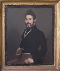 - NOTIZIE STORICO CRITICHE Attribuibile a Giuseppe Teosa perché da ritenersi pendant del ritratto di Laura Cadei Maffoni (inv. n. D00098), moglie del ritrattato, già attribuito da Luigi Rivetti (Artisti chiaresi, in "Brixia Sacra" IX [1918], p. 10), che lo vedeva ancora in casa dell'avvocato Francesco Maffoni, all'artista clarense, il dipinto mostra gli stessi caratteri e le stesse fragilità dell'altro dipinto, succube, forse, un po' troppo ai dettami della ritrattistica neoclassica. La figura dell'uomo, visto di tre quarti, seduto, e con in mano un libro, si staglia su un fondo neutro ma non riesce completamente ad occupare la scena. Manca di monumentalità e di un certo impegno introspettivo, sebbene tecnicamente si debba notare una qualità decisamente alta, una stesura pittorica ricca e preziosa e una pennellata compatta e smaltata.