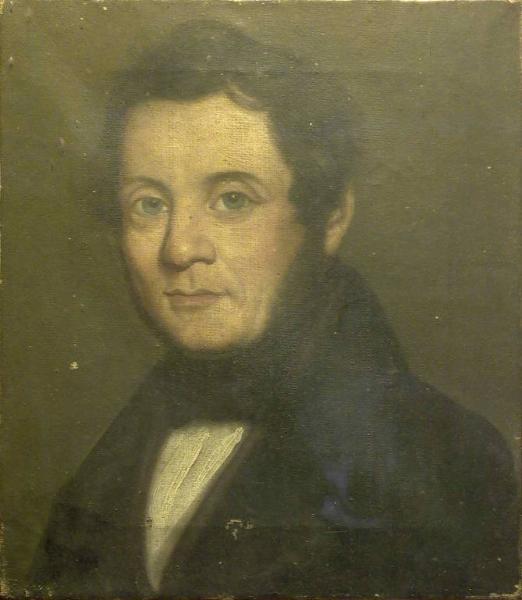 - NOTIZIE STORICO CRITICHE Il dipinto è forse giunto nelle collezioni della Pinacoteca Repossi tramite il lascito di Marianna Rota nel 1926. Nell'elenco delle opere lasciate figurano, infatti, anche "8 piccoli quadretti con cornici dorate e bronzate" dei quali non si specifica il soggetto e che potrebbero essere riconosciuti nei ritratti dei componenti della famiglia Rota tuttora conservati nei depositi della Pinacoteca. Tra i più interessanti del gruppo, questo Ritratto maschile, per le forti assonanze stilistiche con il Ritratto di Giuseppe Bottinelli (inv. n. D00047), eseguito dal Trécourt nel 1841, può essere a buon diritto ascritto tra le opere compiute dall'artista entro gli anni Quaranta dell'Ottocento. Rispetto al citato dipinto raffigurante Giuseppe Bottinelli, questo Ritratto maschile mostra alcune morbidezze che lo segnalano successivo e già introducono ai pregevoli umori atmosferici delle opere più avanzate dell'artista come, ad esempio il Ritratto del canonico Bertoli (inv. n. D00049), collocabile verso il 1869.