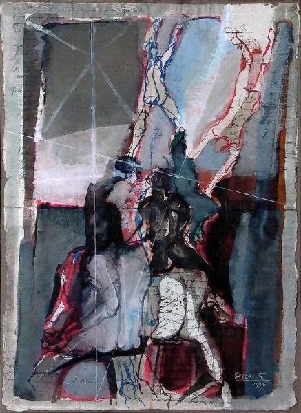 - NOTIZIE STORICO CRITICHE Il dipinto si costruisce su nette direttrici geometriche che mettono in evidenza il gioco instabile della raffigurazione; il carattere astratto dell'impostazione cela, infatti, come in tutte le opere del periodo, la sua radice figurativa che l'artista contrappone visivamente e tecnicamente contrapponendo alle regolari strutture astratte il mosso e vibrante segno che definisce le presenze fantasmatiche (o larvali) dei soggetti della rappresentazione. Teso e in crescendo il muoversi delle forme fa sì che colore e forma - nel loro fondersi e contrapporsi - contribuiscano a mettere in atto il profondo ed evocativo sentimento del rito circense contraddistinto per sua natura dall'ambivalente scenario di allegria e di tristezza.