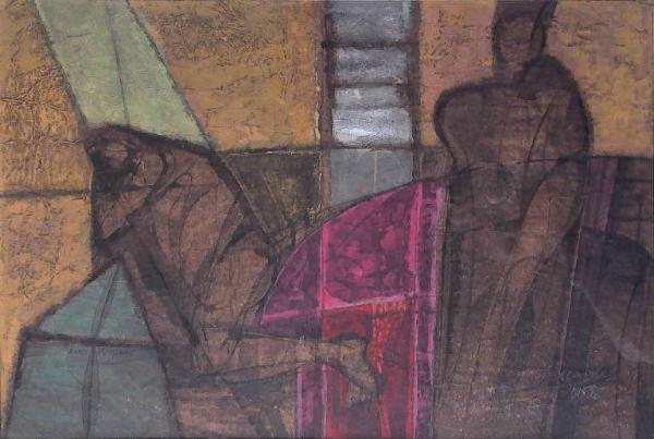 - NOTIZIE STORICO CRITICHE Astrazione e geometrizzazione giungono in questo dipinto a una bella sintesi che si tramuta in un gioco di rimandi ben chiarito anche dal titolo: forme, figure e colori definiscono e sono a loro volta definiti dallo spazio tanto che l'equilibrio che si instaura tra i diversi elementi è essenziale per lo sviluppo e la lettura dell'opera.