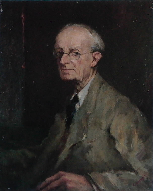 Il campo pittorico è dominato dal ritratto di Cesare Grazioli raffigurato ormai anziano d'età a mezza figura con il busto orientato verso sinistra ed il volto girato verso l'osservatore. É elegantemente vestito e indossa gli occhiali.