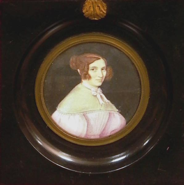- NOTIZIE STORICO CRITICHE Rispetto alla miniatura firmata da Giuseppe Bassini, questa, così come l'altra raffigurante una donna di casa Bettolini in abito viola (inv. n. D00222) mostra una costruzione più sommaria e una definizione dei particolari meno precisa, soprattutto nella resa dell'ampio vestito rosa. Più garbata e meno pesante, invece, la conduzione dei tratti fisiognomici. Differente, infine, dall'opera del Bassini, è il ductus pittorico, meno evidente e più sfumato. Opera interessante di gusto neoclassico.