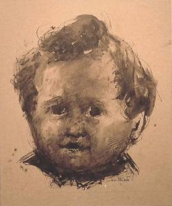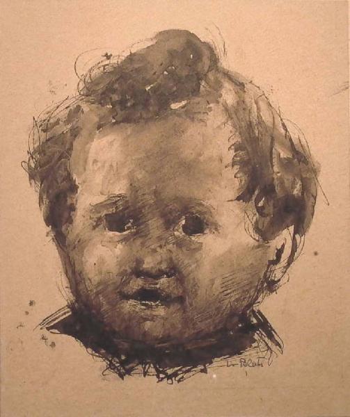 - NOTIZIE STORICO CRITICHE Il grazioso ritratto, eseguito con tecnica veloce e compendiaria, fissa i tratti del figlio dell'artista. I tratti del volto sono resi con piccoli segni a penna e sottolineati con stesure di china acquerellata a pennello. In questo modo Pelati determina piani chiaroscurali ammorbiditi e scultorei che accentuano le rotondità infantili del viso del piccolo che l'artista riuscì a fissare anche in scultura.