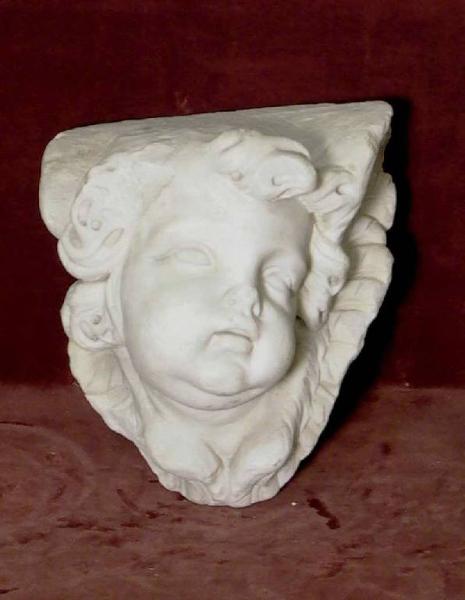 - NOTIZIE STORICO CRITICHE La paffuta testa d'angelo doveva, con tutta probabilità, far parte della decorazione di un monumento sepolcrale; prova di questo è la presenza di un perno sul retro della scultura. Su base stilistica è possibile assegnare l'opera alla produzione tardo ottocentesca, in ambito eclettico, che ben si attaglia alla maniera di Emanuele Marcetti al quale il frantume è stato attrribuito. La ripresa dei moduli barocchi, infatti, è trattata con leggerezza decorativa, soprattutto nella resa dei capelli e nella morbidezza del piumaggio delle ali.