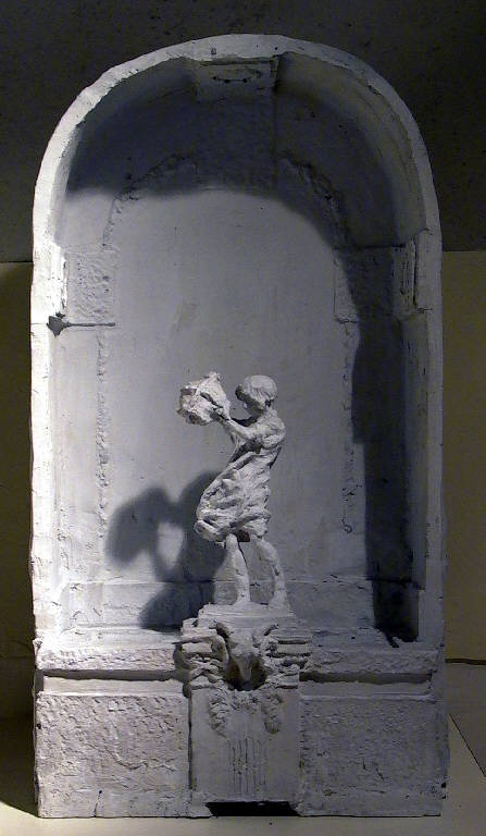 - NOTIZIE STORICO CRITICHE Di spigliata dolcezza, la figura della bambina che regge un'urna, mentre il vento le gonfia il corto vestitino, è posta al centro di una grande nicchia e pare sdrammatizzare la solenne rigidezza del monumento, trattato secondo i caratteri sobri dell'estetica Decò. La figuretta della bambina, dal modellato vibrante ed espressionistico, crea l'irruzione del quotidiano, con la sua sommessa e dirompente vivacità, nel modo dell'eterno e dell'immobile al quale è affidato il messaggio della memoria.