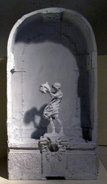 In una grande nicchia vuota si vede una bambina, il cui vestito è agitato dal vento, che alza verso l'alto un'urna.
