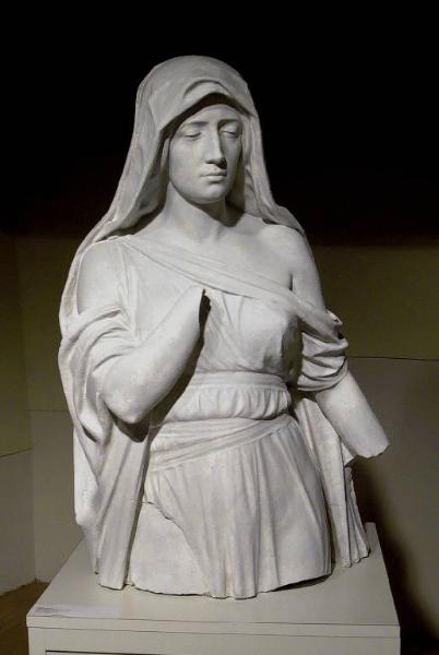 - NOTIZIE STORICO CRITICHE Affine ad altre immagini di dolenti realizzate da Ricci, questa mezza figura mantiene, nella struttura chiusa e raccolta, un forte richiamo alla cultura classicista dell'accademia, rifuggendo, più che altrove dall'esasperazione sentimentale dell'espressione e riducendo anche il palpitare del chiaroscuro ai mezzi toni. Il viso della donna, a metà tra idealizzazione e scultura di ispirazione verista, è trattato con grande sensibilità e con magistrale forza espressiva.