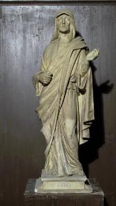 - NOTIZIE STORICO CRITICHE Ricorda don Luigi Rivetti che "le quattro statue in bronzo raffiguranti San Gioachino, Sant'Anna, San Zaccaria e Santa Elisabetta furono modellate, per commissione della Compagnia di San Giuseppe, dallo scultore, nostro concittadino, Antonio Ricci e furono collocate il 28 luglio 1924. Costarono L. 4000" (nota manoscritta di Rivetti inserita nell'esemplare della pubblicazione Rivetti L., La Parrocchiale di Chiari, del 1920 conservato presso la Biblioteca Morcelliana; la nota è posta tra le pp. 36-37). Le sculture furono realizzate per ornare nei giorni festivi l'altare di San Giuseppe nella Parrocchiale di Chiari. La santa, con tunica e mantello di ascendenza classica, è raffigurata con la sinistra leggermente alzata e tiene nella destra un cartiglio. Come per le altre sculture del gruppo fuso per la Parrocchiale di Chiari nel 1924 (cfr. inv. nn. S00049, S00050, S00052), si notano qui forti debiti alla statuaria di primo Rinascimento e al linguaggio corretto e preciso dell'Accademia.
