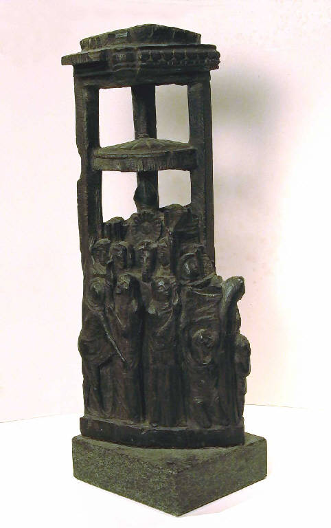 - NOTIZIE STORICO CRITICHE I caratteri arcaizzanti che risaltano immediatamente nella scultura sono utilizzati da Pelati per mettere in scena un rito collettivo che si potrebbe dire ancestrale. Per questo anche la disposizione paratattica delle figure, poste sotto una sorta di baldacchino (metà struttura e metà apparato effimero), accentua questo senso di lontananza temporale e dà all'artista la possibilità di trattare la materia con una forza spirituale inusitata. Rispetto alle opere coeve in questa comincia a farsi spazio un nuovo sentimento spaziale che condurrà l'artista entro un paio d'anni ad abbandonare la forma chiusa e a bassorilievo per nuove soluzioni più aperte e disponibili ad entrare in dialogo con lo spazio reale.