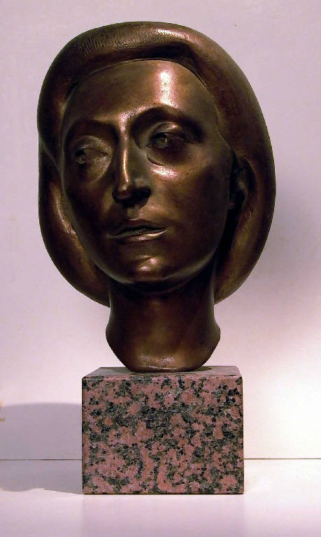 - NOTIZIE STORICO CRITICHE Un senso di classica pulizia presiede a questo ritratto nel quale alcuni tratti espressionistici utilizzati dall'artista per altre teste (si veda il ritratto di Mira, inv. n. S00100) sono attenuati per lasciare il campo a una rotondità di forme e a una compiutezza nella resa generale che rimanda, con tutta probabilità, ai ricordi giovanili dell'apprendistato presso Pietro Repossi e alla formazione novecentista dei primi anni milanesi. Ciò che non cambia anche in questo ritratto è il dominio sulla struttura e la messa in evidenza degli elementi strutturali della composizione attraverso un modellato solido e netto, a tratti tagliente che permette alla levigata sinuosità del modellato di ricevere e far scivolare la luce su superfici ampie e polite. Il viso, inquadrato dalla morbida acconciatura, riceve risalto dal disporsi delicato dei piani e dall'addolcito incurvarsi delle superfici.