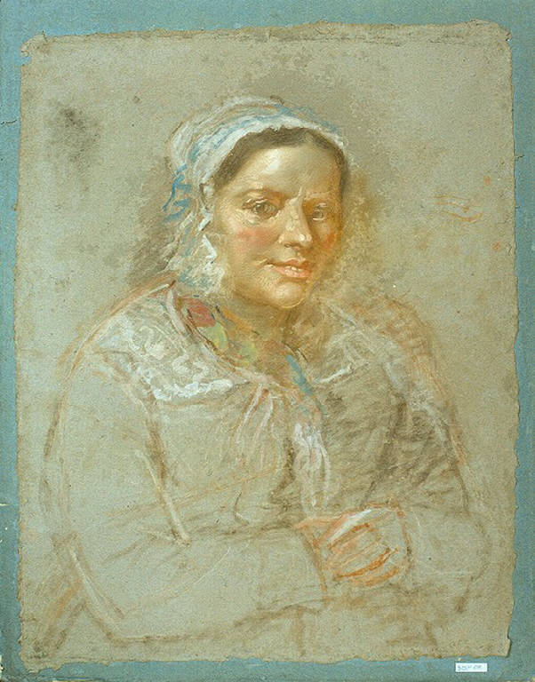 - NOTIZIE STORICO CRITICHE Il cartone su cui è incollato il disegno è ricavato da una scatola adatta a cantenere fogli distesi. Il numero 112 corrisponde infatti nell'Inventario della donazione al Comune a "Cartella con 107 stampe e incisioni e 22 stampe di stile neoclassico". Il ritratto vero e proprio sembra invece corrispondere al n. 111: "Testa di donna a pastello di Angelo Ligari". Non si comprende invece il significato del n. 230.