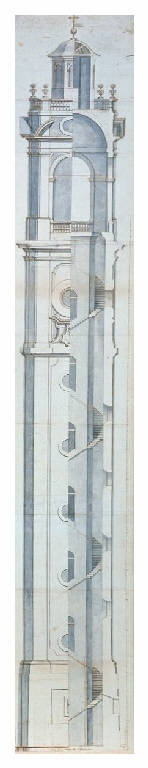 Prospetto e sezione del campanile della chiesa dei Santi Gervasio e Protasio a Sondrio