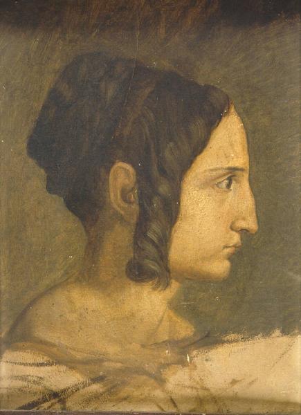 - NOTIZIE STORICO CRITICHE Il piccolo dipinto potrebbe essere il ritratto di Letizia Castellar, moglie di Angelo Ligari: la descizione che lo stesso Angelo fornì alle autorità dopo la fuga della donna in Guatemala, sembra corrispondere esattamente a questo ritratto: "La Castellar è di fatura piccola, ha il naso aquilino, gli occhi castani scuri, così pure le giglia ed i capegli, il colorito è bianco palido ..."