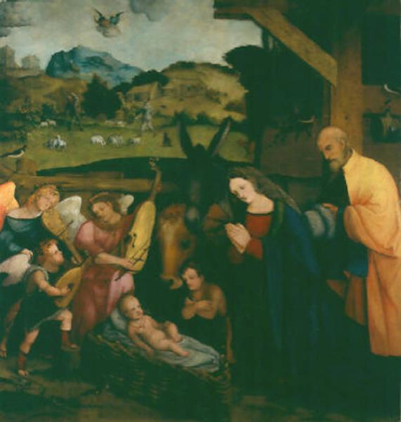 - NOTIZIE STORICO CRITICHE La scena è raffigurata con un linguaggio narrrativo di facile lettura, ma presenta una dovizia di particolari ed un paesaggio sullo sfondo di sapore nordico.\nIl paesaggio è avvicinabile a quello della Natività di Garzeno di Sigismondo, dal quale l'episodio dell'Annuncio ai pastori sembra ripreso in controparte. La tavola è vicina anche ad altri pittori della cerchia del De Magistris: Giovanni Andrea De Magistris e Ambrogio Arcimboldi.